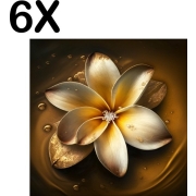 BWK Textiele Placemat - Prachtige Witte Bloem met Gouden Gloed - Set van 6 Placemats - 40x40 cm - Polyester Stof - Afneembaar