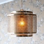 Hermine hanglamp in Marokkaanse stijl Hermine is een hanglamp met oosters design, waarvan de lampenkap bestaat uit twee cilinders, die in elkaar geschoven zijn en verschillende afmetingen hebben.…