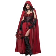 Dit donker Roodkapje kostuum voor vrouwen bestaat uit een lange jurk, een lange cape met capuchon en een zakdoek met ruiten. (Mand en laarzen niet inclusief). Dit Roodkapje kostuum is ideaal voor een…