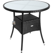 De hoogwaardige CASARIA® balkontafel van polyrattan biedt veel ruimte voor drankjes, bloemen of tijdschriften op een elegant tafelblad van matglas met een diameter van 80 cm. Een extra plank onder…