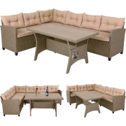 Polyrotan Loungeset Lissabon Crème/Beige incl kussens