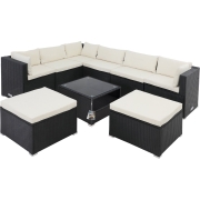 Polyrotan Loungeset Zwart/Crème WPC tafelblad