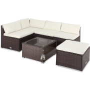 Polyrotan XL Lounge Bruin/Crème met dikke rugkussens