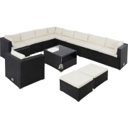 Polyrotan XL Lounge Zwart/Crème dikke rugkussens
