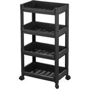 CM keukentrolley/badkamer trolley - op wieltjes - 4-laags - zwart - kunststof - 35 x 22 x 67 cm -
