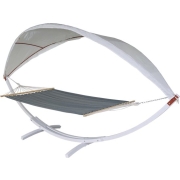 Cosmo Casa Luxe Hangmat - Stijlvol Comfort voor Balkon - Terras en Serre - Houten Frame - 200x140 cm Liggedeelte - Inclusief Beschermend Zonnedak - Wit/Grijs