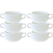 6x kommetjes/soepkommen met oor voor o.a. dessert, soep en ontbijt. Gemaakt van stevig geglazuurd luxe keramiek in de kleur wit. Afmeting: D10 x 8 cm/500 ML. Handige stapelbare kommetjes voor in…