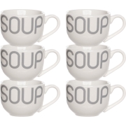 Een set met 6x soepbekers/soepkommen, in een mix van 2 kleuren(grijs en donkergrijs). Van elke kleur 3x stuks. Op elke soepkom staat de tekst Soup. Met oren, zodat u de hete kom goed kunt…