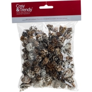 Zak met 100 gram decoratie dennenappels met sneeuw