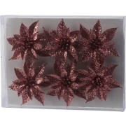 6x stuks decoratie bloemen rozen roze glitter op ijzerdraad 8 cm - Decoratiebloemen/kerstboomversiering/kerstversiering