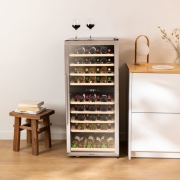 Wijnkast met capaciteit voor 70 flessen wijn. Met 9 legplanken van naturel beukenhout en twee zones met temperatuurregeling, zodat je de flessen op verschillende temperaturen kunt bewaren.…