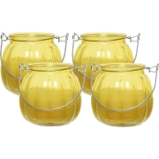 Citronella kaars voor buiten - 4x - glas - geel - 15 branduren - D8 x H8 cm - citrus geur -