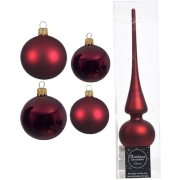 Glazen kerstballen pakket donkerrood glans/mat 38x stuks 4 en 6 cm met piek mat -