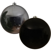 2x stuks grote kerstballen van 20 cm glans van kunststof zwart en zilver -