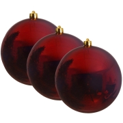 Decoris Kerstbal - 3x - donkerrood - groot - 25 cm - kunststof - glans -