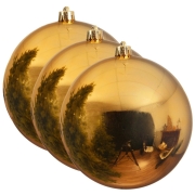Grote kerstbal - 3x - goud - 25 cm - kunststof - glans - mega kerstbal -