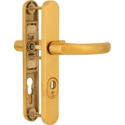 Dieckmann Kronos smaldeur messing gepolijst Achterdeurbeslag met aan 2 zijden een kruk en afgerond schild D2007M/045