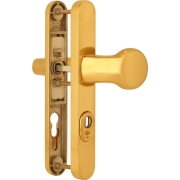Dieckmann Kronos smaldeur messing gepolijst Achterdeurbeslag met aan 2 zijden een kruk en afgerond schild D2007M/045