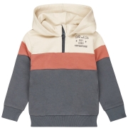 Deze stoere colorblock hoodie van Dirkje in off-white, roest en navy is perfect voor een trendy en comfy look! Met een halve ritssluiting en capuchon biedt hij extra warmte en gemak. De zachte stof…