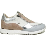 Dames sneaker van DL Sport. Sneaker in verschillende materialen. Deze sneaker heeft een rits en een uitneembaar voetbed. Materiaal: leer, suède en metallic leer Voering: leer. Kleur: beige, zilver,…