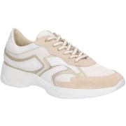 DL SPORT 6540 lage sneakers voor dames in een elegante beige tint met wit. Deze sneakers combineren comfort en mode met een ronde neus en chunky zool. Geniet van het luxe gevoel van een leren…