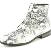 Enkellaars van Durea in zwart/wit leer met een slangenprint op een zwarte rubberzool. Artikel 9699/765 heeft 3 verstelbare gespen op de wreef en een rits aan de binnenzijde van het laarsje voor een…