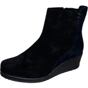 Zwarte korte enkellaars met een sleehak. De laars heefteen rits sluiting. Wijdte H Uitneembaar voetbed Rubberen zool…