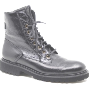 Stoere veterboot in zwart glans leer met een uitneembaar voetbed.…