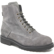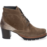 Stoere enkellaarsje met een veter op een hoge hak in khaki taupe combi suède van Durea art 9777…