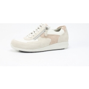 Sneaker van Durea in een wit-taupe leer-suede combinatie. Art. 6260 heeft een witte rubberzool met een veter- en ritssluiting. wat het aan-en uittrekken vergemakkelijkt. Deze sportieve veterschoen is…