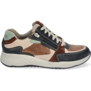 Sneaker van Durea in blauw printleer en nubuk print met subtiele zwart lakleer accenten. De sportieve schoen heeft naast een zwarte veter een rits aan de buitenzijde van de voet. Artikel 6295 605…