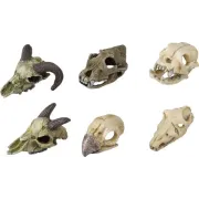 Natuurgetrouwe decoratie van miniatuurfiguren. Gemaakt van polyrin (kunsthars). Beschikbaar in zes verschillende schedels: ram, hyena, tijger, ree\xebn, gier en paard. Je krijgt een willekeurige…