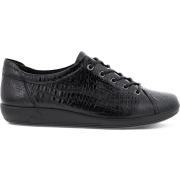 Zwarte ECCO Soft Classic veterschoenen met crocoprint voor dames. Gemaakt van leer, een binnenwerk van leer en een stevige profielzool. De veterschoenen hebben een vetersluiting en comfortabel…