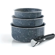 Qdesign 4-delig inductiekookgerei 3-delige set aluminium pannen met antiaanbaklaag (16, 18 en 20 cm) met 1 afneembare handgreepset voor alle soorten fornuizen marmergrijs