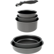 4-delige pannenset: deze set bestaat uit 3 potten met een diameter van 16, 18 en 20 cm en een afneembare handgreep voor meer bruikbaarheid. De potten nemen dus minder ruimte in en zijn…