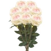 Kunstbloemen boeket roos Joelle - 8x - creme - 65 cm - decoratie bloemen -