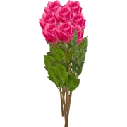 Kunstbloemen boeket Roos Bud - 8x - 58 cm - fuchsia - Kunst zijdebloemen -
