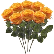 Kunstbloemen boeket roos Simone - 8x - geel/oranje - 45 cm - decoratie bloemen -