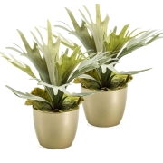 Kunstplant Staghorn varen - groen - in gouden pot - 38 cm -