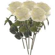 Kunstbloem roos Marleen - 5x - creme - 63 cm - decoratie bloemen -