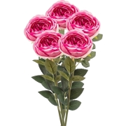 5x kunstbloem roos Joelle in de kleur fuchsia. Deze roos heeft 1 mooie volle roos met 3 sets bladeren van ca. 11 stuks. De bloem heeft een doorsnee van ca. 11 cm. Zet meerdere bloemen in een vaas…
