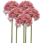 5x allium/Sierui kunstbloem in de kleur roze met steelhoogte van ongeveer 62 cm. Deze sierui wordt als losse steelbloem geleverd en kan in combinatie met andere kunstbloemen tot een mooi boeket…