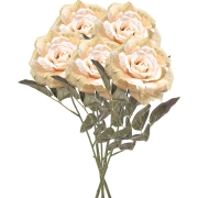 5x kunstbloem roos Pascal in de kleur wit. Deze roos heeft 1 mooie volle roos met 2 sets bladeren van ca. 8 stuks. De bloem heeft een doorsnee van ca. 13 cm. Zet meerder bloemen in een vaas als…