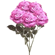 5x kunstbloem roos Simone in de kleur fuchsia. Deze roos heeft 1 mooie volle roos met ca. 5 bladeren. De bloem heeft een doorsnee van ca. 5 cm. Zet meerder bloemen in een vaas als mooie decoratie…
