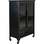 Gemaakt van stevig metaal en staand op handige wieltjes. Dat is kast Ferre Medium. Deze mooie kast van zwart metaal heeft glazen deurtjes. Perfect om je mooiste spulletjes achter te zetten! De…