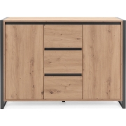 Commode Médard is gemaakt uit spaanplaat met artisanale eikdecor en heeft poten uit MDF in antraciet. De kast bestaat uit 2 draaideuren en 2 legplanken…
