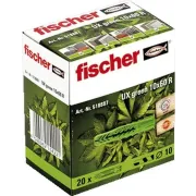 Fischer UX green universele plug, kunststof, lengte 60mm, boorgatdiameter 10mm, geschikt voor schroefdiameter 6 - 8mm, kwaliteitsklasse nylon, met rand, geschikt voor spaanplaatschroef, 20 per…