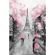 100% Nederlandse Productie! │ Diamond Painting │ Aquarel Eiffeltoren Parijs Roze Paraplu│ Formaat 50 x 75 cm │ Diamond Painting Pakket Volwassen │ Volledige bedekking │ Vierkant │ Full │ Flitzz Diamond Painting