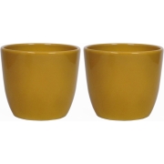2x stuks bloempot glanzend oker geel keramiek voor kamerplant H27 x D32 cm -