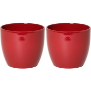 2x bloempot in de kleur glanzend wijn rood gemaakt van keramiek voor een kamerplant - H29 x D36 cm. Deze ronde bloempot uit de Boule serie met gladde afwerking is een bloempot/plantenpot basic…